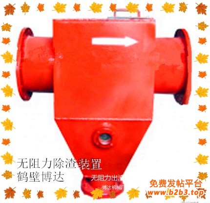 无阻力管路除渣器的工作原理:它将含有杂质的气体从入口导入该装置的内壳和排气管之间,形成旋转向下的外旋流。含外旋流的杂质在离心力的作用下移向器壁,并随外旋流转到该装置的下部,杂质在离心力和重力的共同作用下与气体分开,进入除渣装置的底部。
