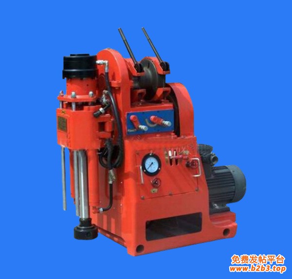 钻机采用机械传动,结构简单,体积小,重量轻,使用方便,性能可靠。钻机配有液压卡盘及液压给进油缸。