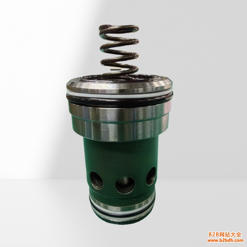 插装件是二通插装阀控制组件中的功能原理构件,它的主体采用了座阀结构,称为座阀主级,与传统的滑阀结构有很大的不同。 插装件一般有阀芯和阀套、端盖、密封件和弹簧等组成。通径16-32的插装件采用端盖结构,通径40以上不用端盖。阀芯和阀套之间为滑动配合,与阀套座部分的密封配合为线密封,该部分的几何形状特征十分重要,并具有多种选择。阀芯有不同的面积比,还可以选择不同的开启压力的弹簧,以满足不同的应用要求。