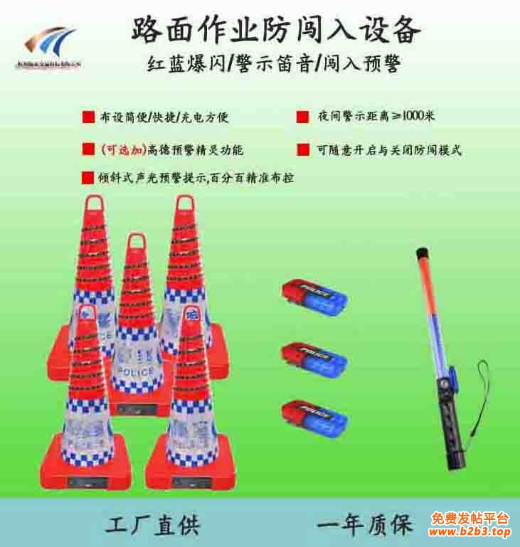 防车辆闯入预警设备:布设于作业执勤区域周边形成路障,提醒司机前方作业处理,请减速绕行。内置大容量储能超长持续待机,在系统方案中,加装物联网模块的设备具有交通事件采集/秒级发布信息的能力,通过具有海量用户的高德地图推送事件发生区域的出行公众和行业管理部门,提升出行安全。设备适用于交通事故处理/临时管制等.同时,通过管理平台实现作业信息的及时掌握/管制实现规范管理。