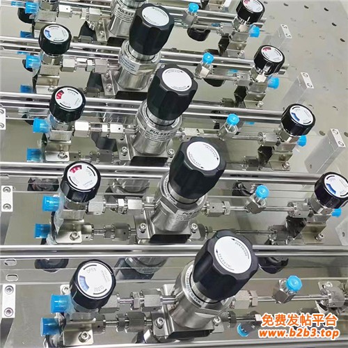 高纯特气供气管路系统,是将高纯气体、特种气体、电子气体等多种瓶装气体汇集到高压管路中,进行减压、稳压并输送到用气终端的整体供气设备,主要由气体钢瓶、不锈钢减压器、高压防爆软管、高压截止阀、自动切换装置、压力表等相关附件组成。主要适用于实验室、电子制造、化工、食品、航空航天等多个领域。