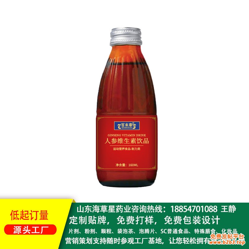 人参维生素饮品研发、打样、免费包装设计 海草星