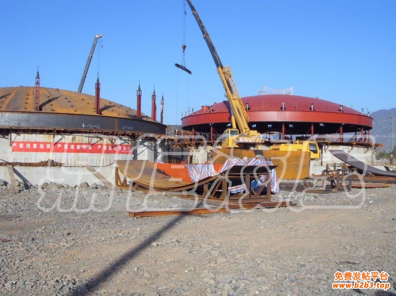 胀圈采用25c型槽钢滚弧后对扣焊接,胀圈的外弧应与罐壁的内弧半径一致。胀圈分段制作,通过32t千斤顶胀紧在罐壁板内侧下部,在犯t千斤顶处和每个提升支柱的两侧胀圈上,均需加设龙门板防止胀圈扭曲和翻转。