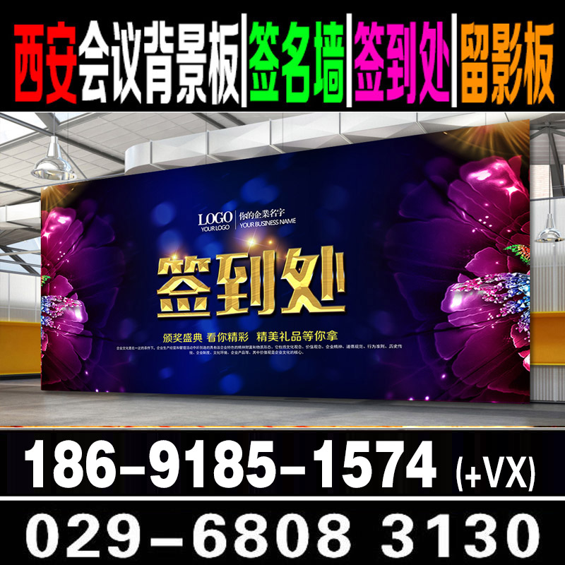 西安会议年会背景板,签到板,喷绘桁架,门展会议日程,kt板制作