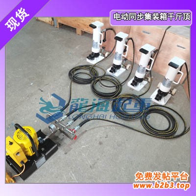 2、电动同步20英寸集装箱千斤顶配有电动泵和液压油管,可实现多台千斤顶同步顶升,同步误差<1厘米,远程操作更安全