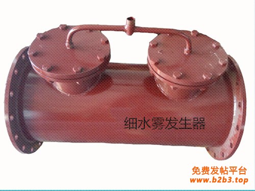 按照上述技术方案制造的细水雾发生器,利用其管道连接法兰连接在瓦斯输送管道上,每隔一定距离安装一个细水雾发生器,向其进水口提供高压水,其腔体内及附近管道内即充满了细水雾。瓦斯由输送管道的始端流向末端,在流通过程中混合了一定量的细水雾,瓦斯不易燃烧或爆炸。如果输送末端发生回火或爆炸,每一个细水雾发生器相当于一个阻火器,能防止沿管道逆向蔓延,细水雾发生器解决了煤矿瓦斯长距离安全输送的技术难题。